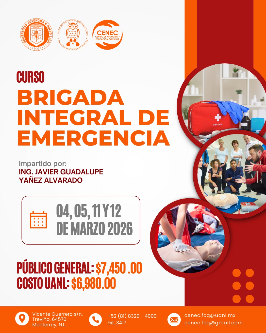 $7,450.00 público general, $6,980.00 Ex Alumnos, Docentes, Colaboradores UANLDocumento probatorio