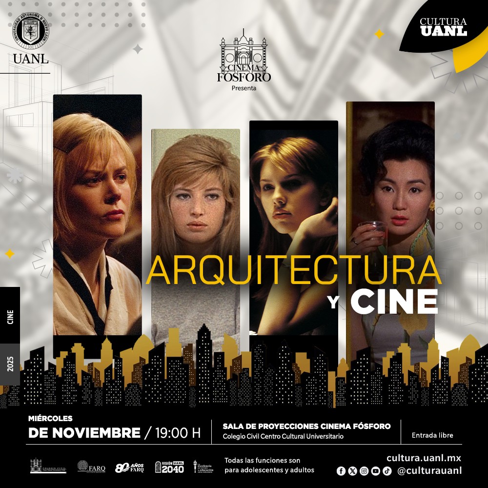 La Secretaría de Extensión y Cultura de la UANL, con su Cinema Fósforo en colaboración con la Facultad de Arquitectura, te invita al ciclo de películas “Arquitectura y Cine”